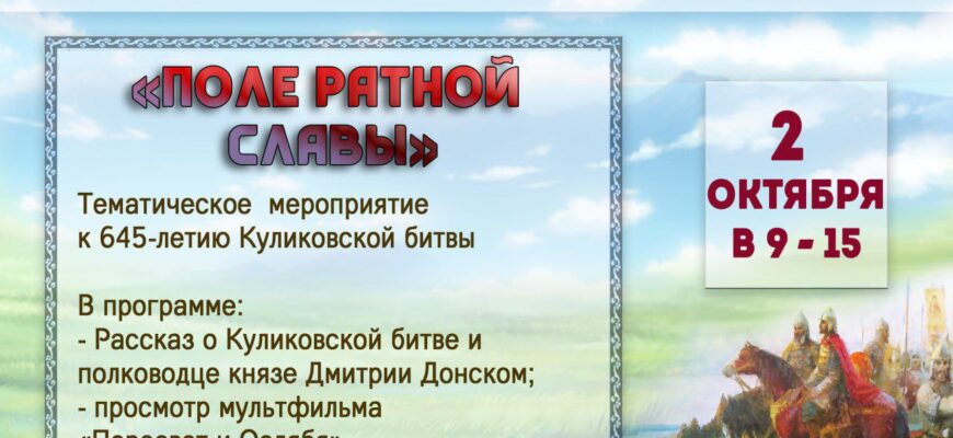2 октября в детско-юношеском отделе «Петровское» состоялось тематическое мероприятие для 7 «Р» класса «Поле ратной славы», посвященное 645-летию Куликовской битвы.