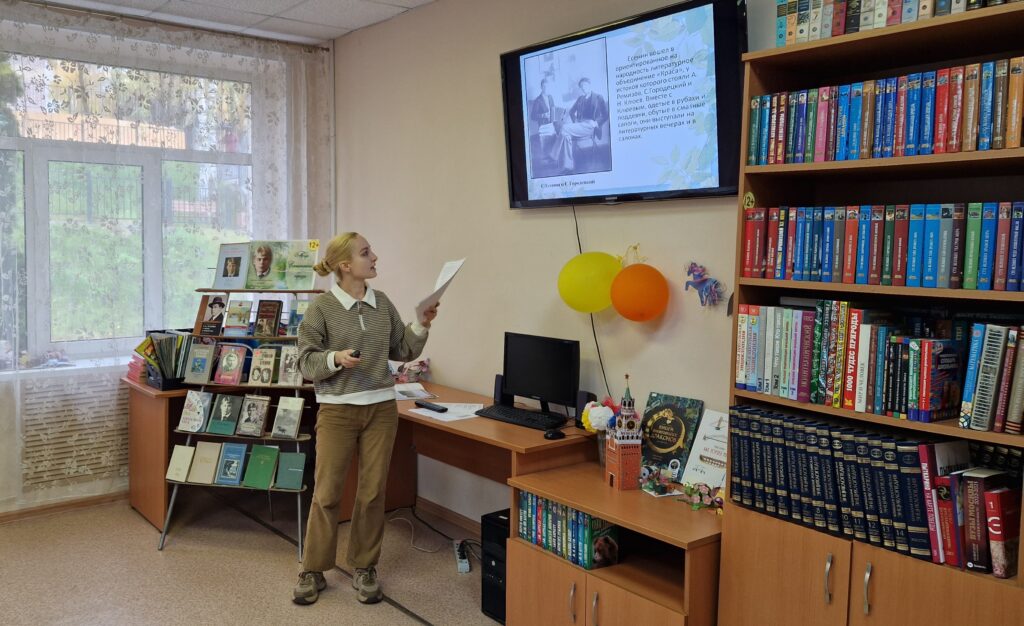15 октября в детской библиотеке (детско-юношеском отделе «Петровское») для учащихся 9 «П» класса гимназии №4 прошёл литературный час «Мир есенинского образа», посвящённый 130-летию со дня рождения С. А. Есенина. Библиотекарь рассказала ребятам о жизни и творчестве поэта, о главных темах его поэзии: теме родной природы, дружбы, любви. Прозвучали такие стихи, как «Письмо матери», «Русь», «Письмо женщине», «Клён ты мой опавший». Ребята узнали интересные факты о детстве и семье Сергея Есенина, о творчестве, об особенностях лирики, о личной жизни и трагической гибели поэта. Посмотрели документальный видео-ролик с мамой поэта, где она рассказывала о его детстве. К этой дате в читальном зале детской библиотеки (детско-юношеском отделе «Петровское») оформлена одноимённая книжная выставка. На которой представлены собрания сочинений, стихотворные сборники и поэмы, а также книги исследователей, посвященные жизни и творчеству поэта.