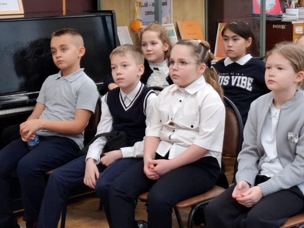 Школьникам рассказали о смене времён года, о том, что в начале октября ещё бывают тёплые и погожие денёчки. С деревьев ещё не все листья опали, но уже шелестит золотая метелица – листопад. Улетаю птицы: журавли — клином, гуси – верёвочкой, скворцы – кучкой. Все готовятся к зиме.