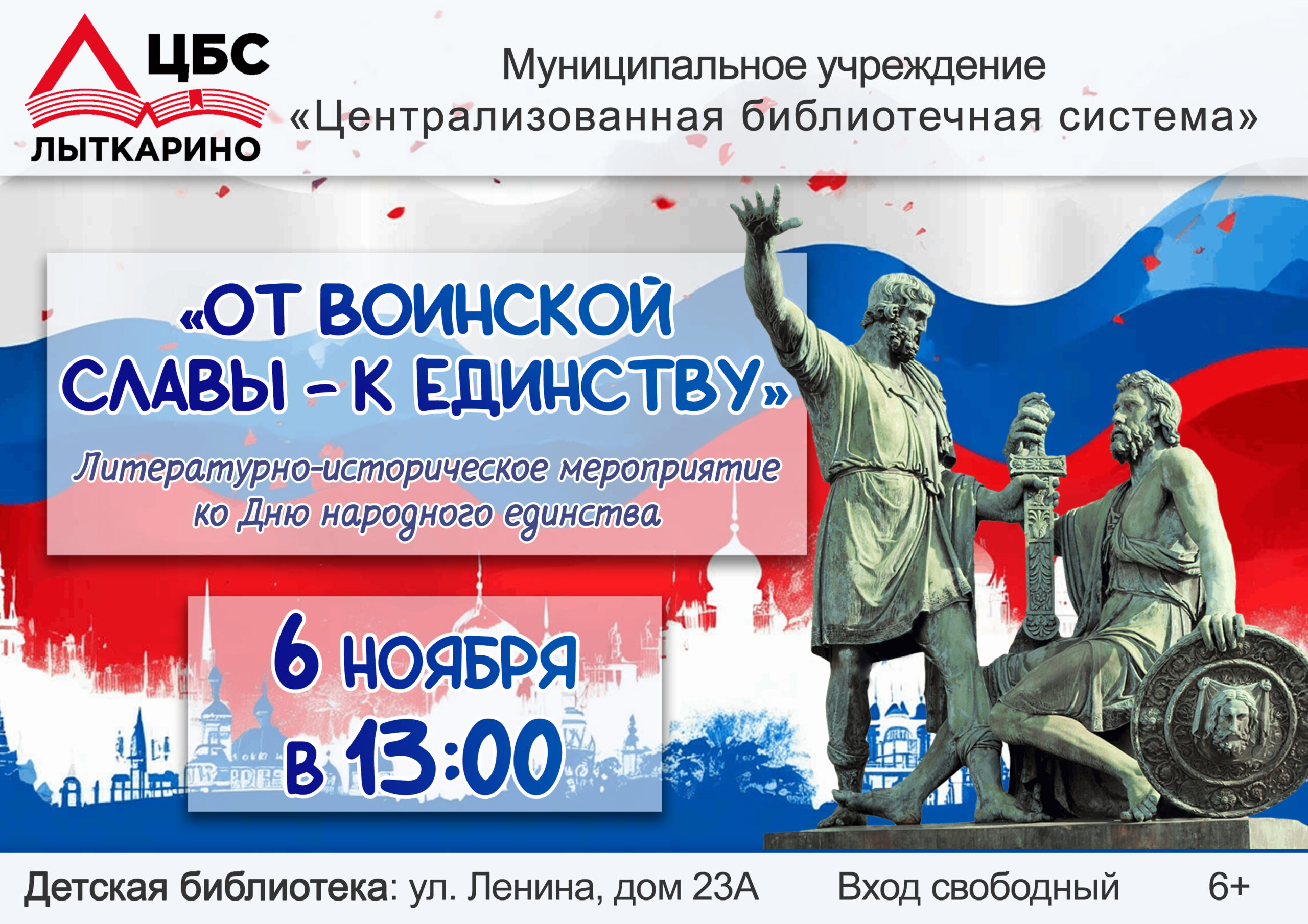 Приглашаем в Детскую библиотеку! Вместе погрузимся в историю России: узнаем о событиях Смутного времени, героизме Минина и Пожарского, и как народ сплотился ради общей цели.